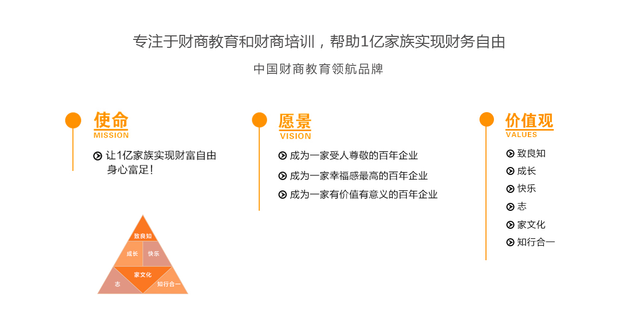 打造驾驭财富与创造财富的能力、帮助所有贫穷的人摆脱贫困、帮助小富的人提升财富层级,实现身心灵合一、财富自由