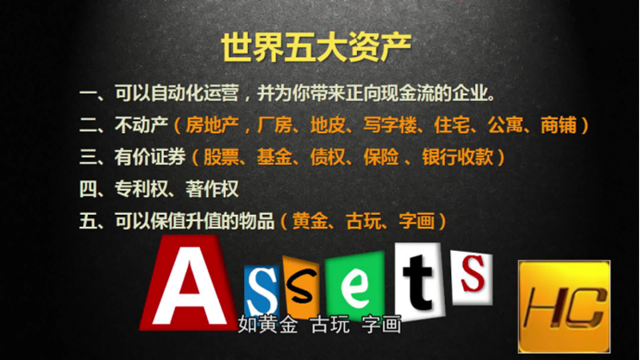 被动收入来自哪里?周文强把资产分为五大类:可以自动化运营并且为你带来正向现金流的企业;不动产(房地产、地皮、商铺等);有价证券(如股票、基金、债券、保险、信托、